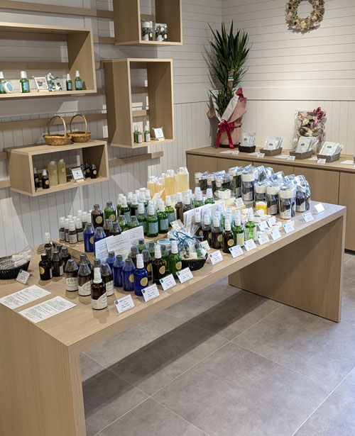 ロビーには添加物、防腐剤を一切使っていない、ハーブ系のスキンケア商品の販売も行なわれています。